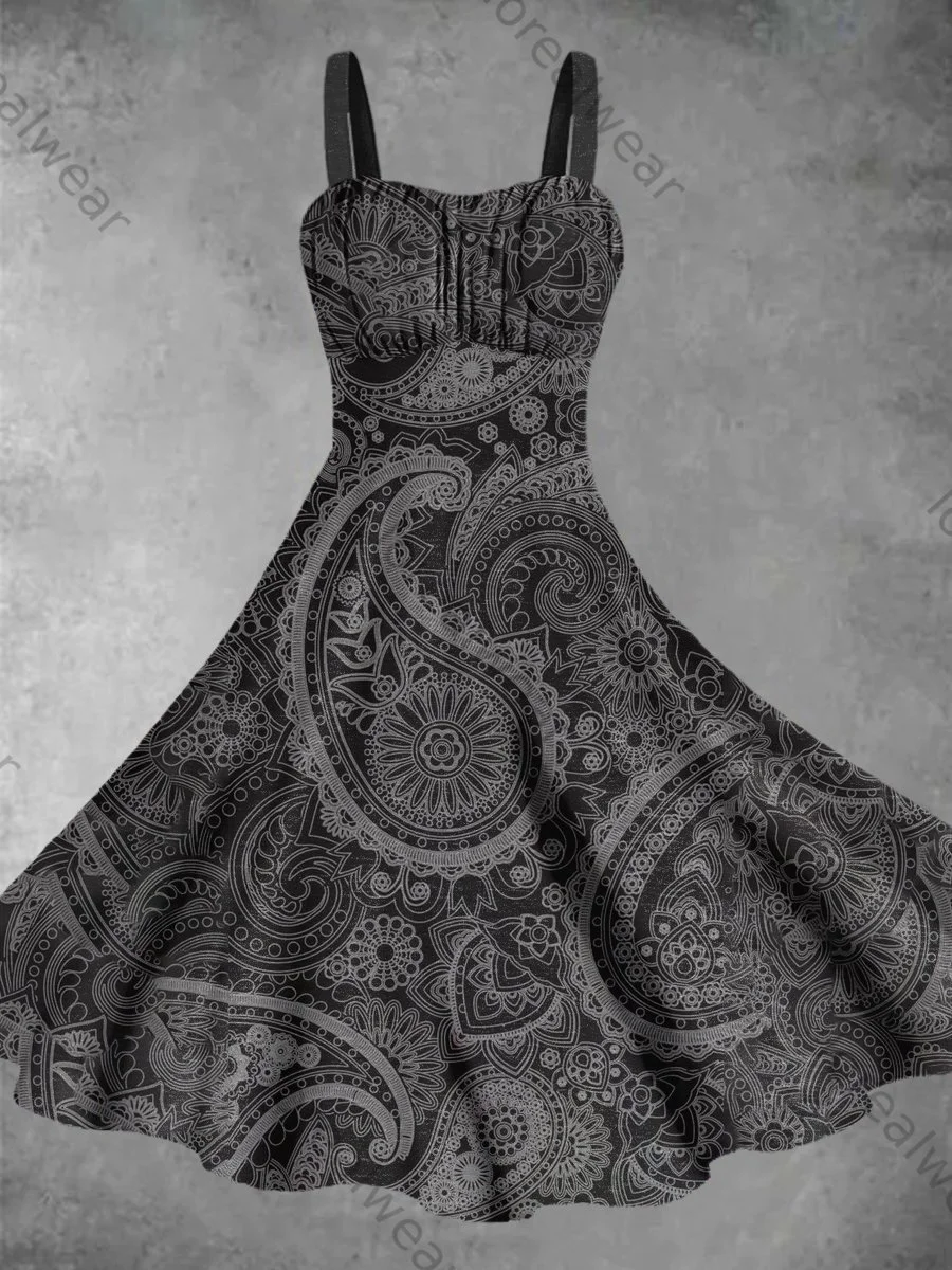 Abstract Bohemian Cashew Print Sleeveless Dress
