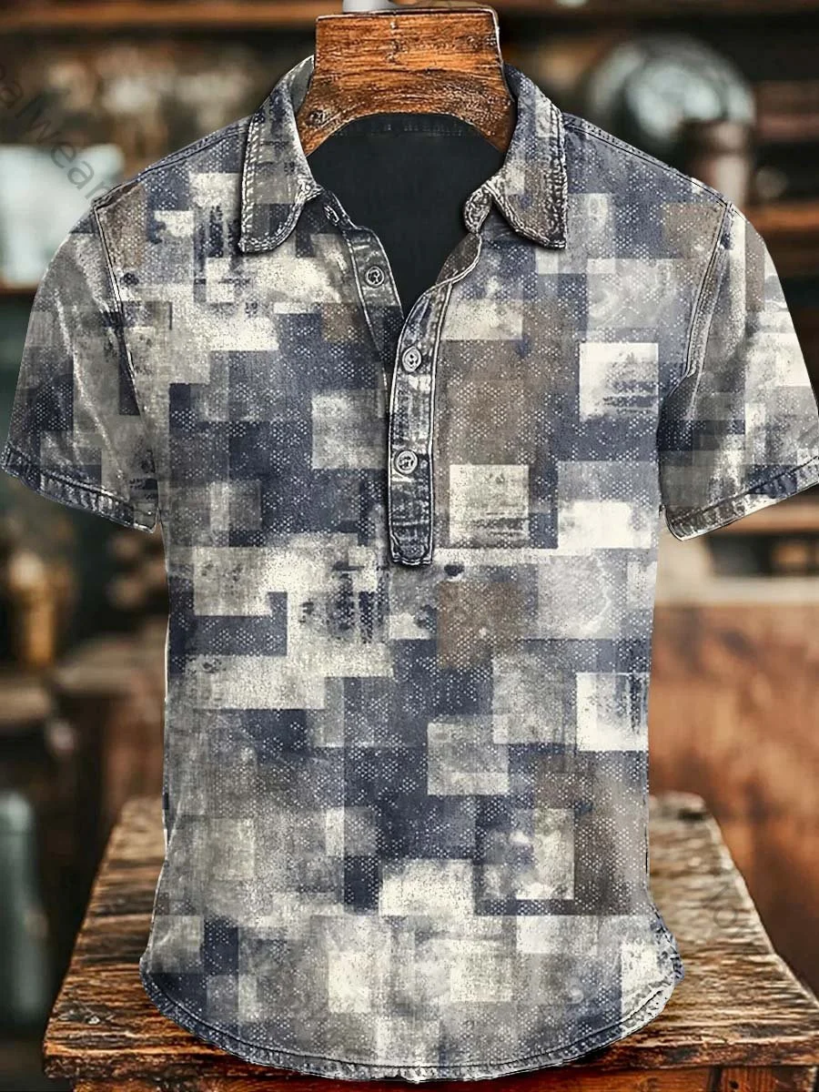Irregular Gradient Checkered Printed Casual Short Sleeved Polo Shirt