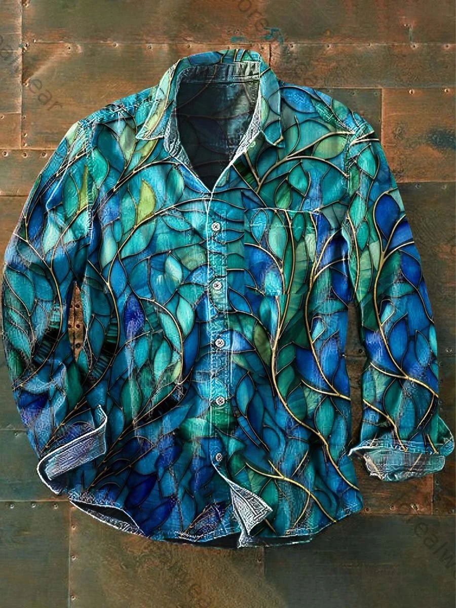 Men's Abstract Glass Floral Print Casual Long Sleeve Shirt