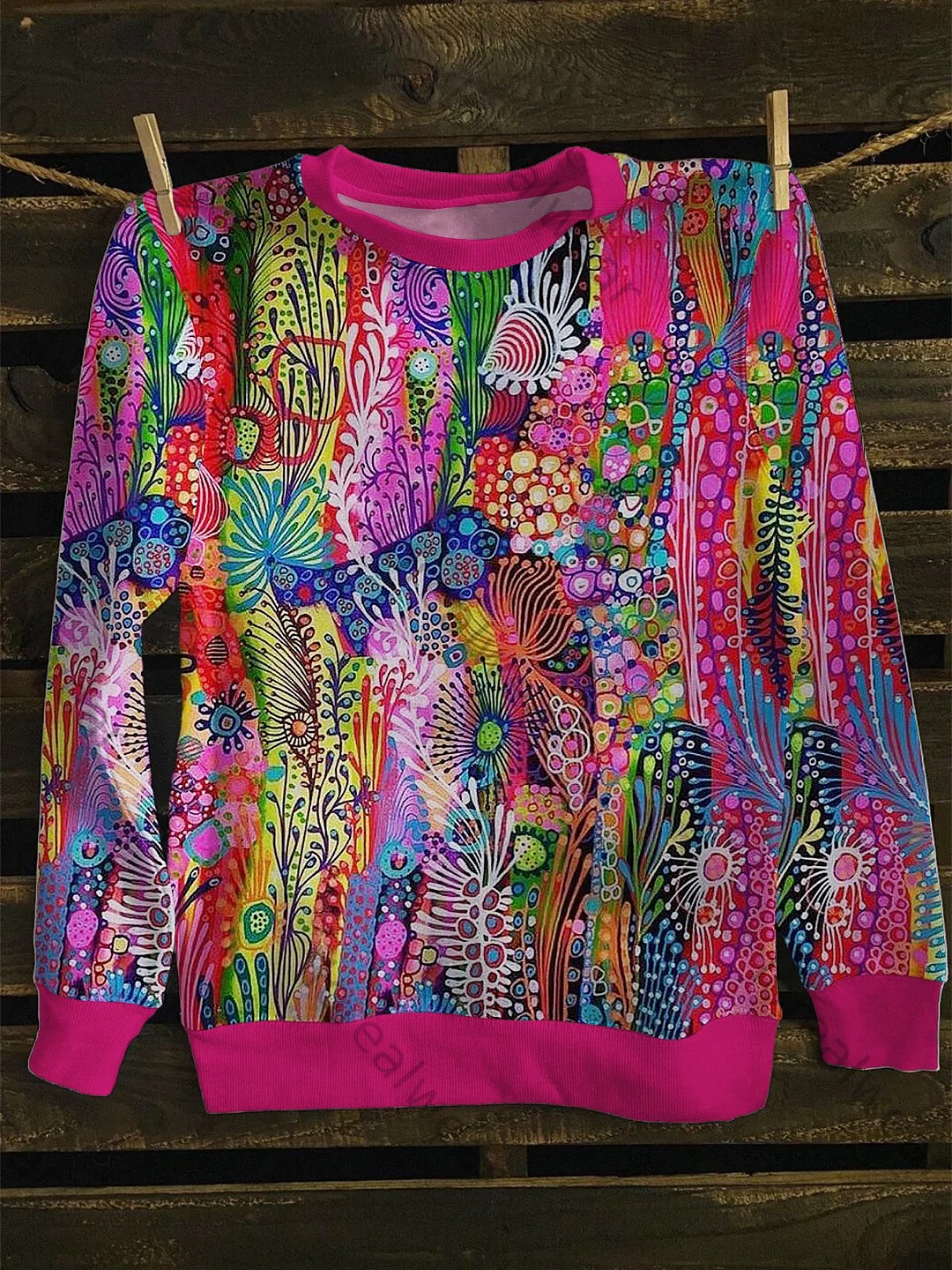 Unisex Color Abstract Printed Crew-Neck Retro Fashion Loose Long Sleeved Sweatshirt