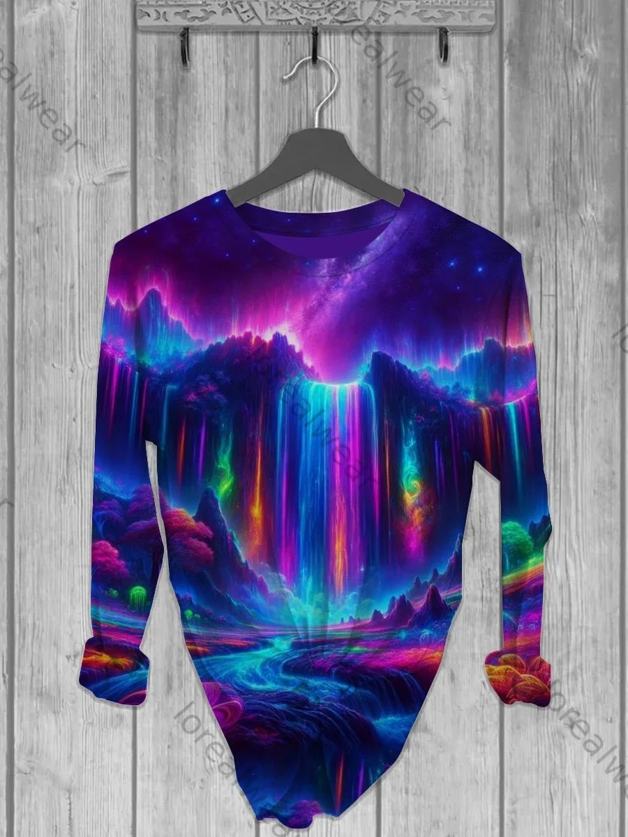 Unisex Colorful Waterfall Abstract Print Design Long Sleeve T-Shirt