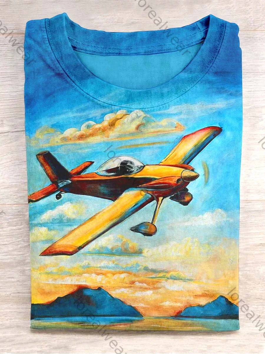 Unisex Oil Painting Airplane Casual Printed Design T-shirt