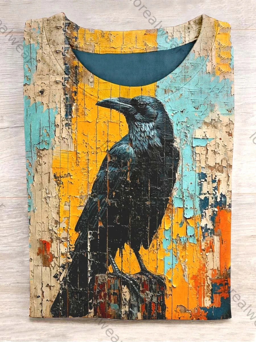 Unisex Oil Painting Raven Abstract Print Design T-Shirt
