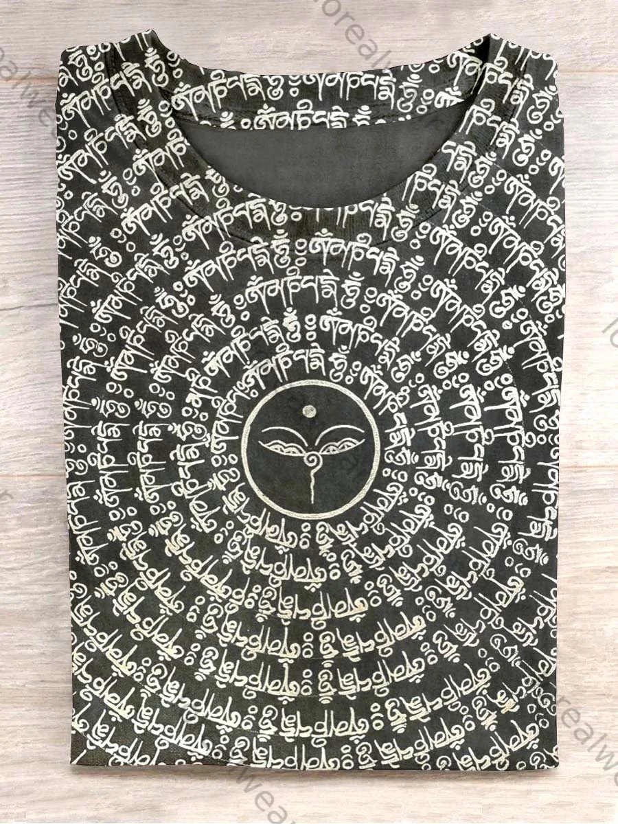 Unisex Retro Totem Printed Casual Crew Neck T-Shirt