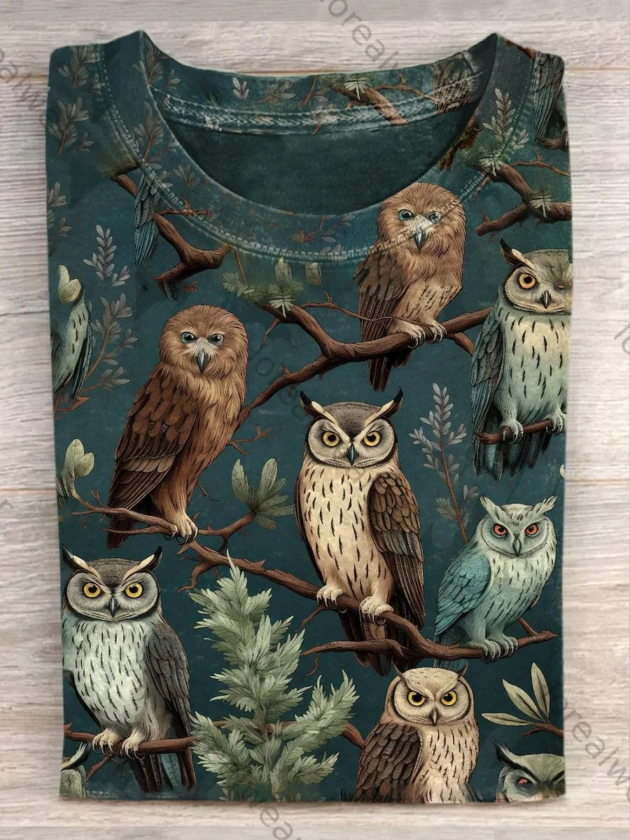 Unisex  Vintage Owl Flower Printed Vintage Fashion Loose Short Sleeve T-Shirt