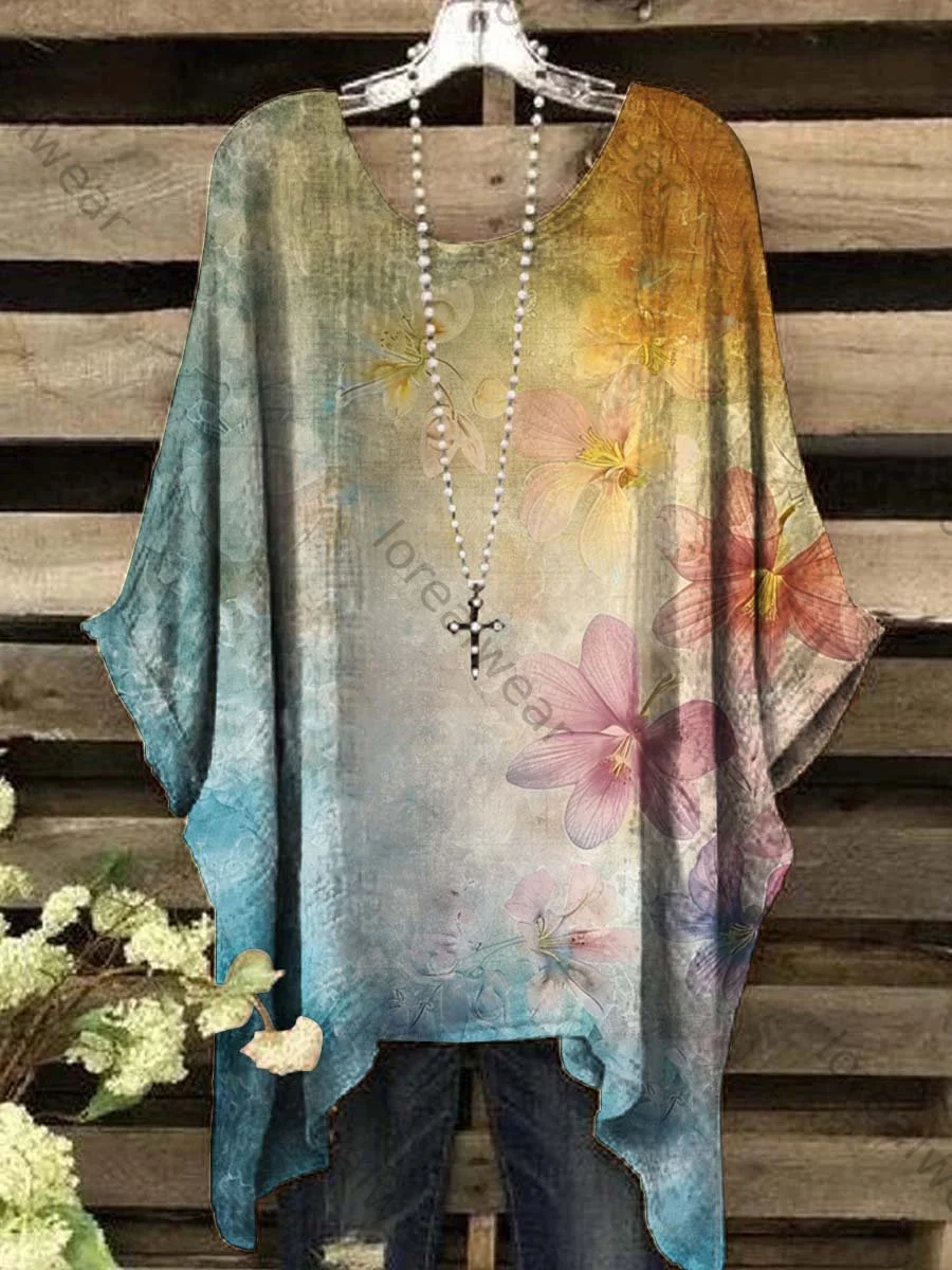 Women's Vintage Gradient Floral Print Casual Top